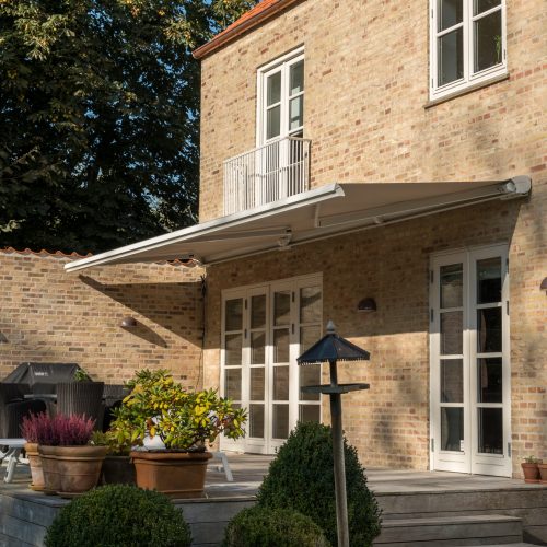 6720 Knækarmsmarkise er Den Diskrete, og er vores mest kompakte kassettemarkise der med sit afrundede design passer til de fleste facader.