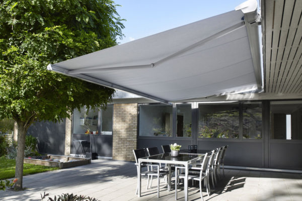 Den kompromisløse 6760 knækarmsmarkise, kan leveres med et udfald op til 400 cm og op til 1200 cm i bredden.